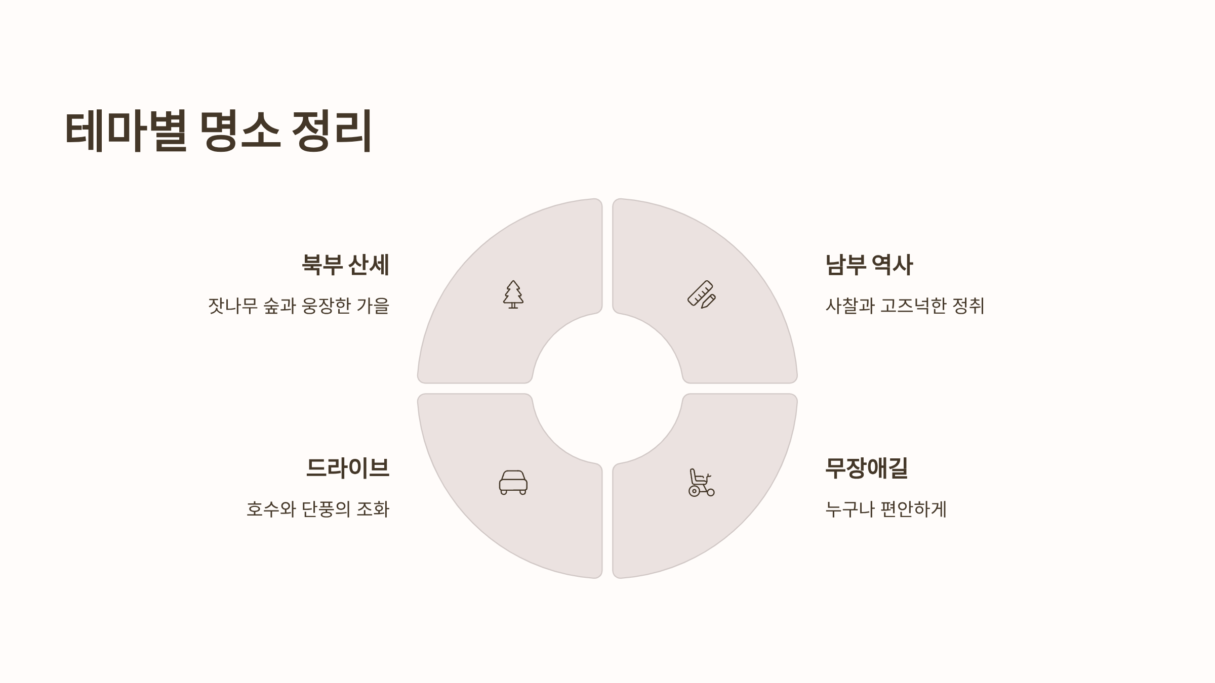 유모차, 휠체어 이용자 또는 체력이 약한 분들도 단풍을 편안하게 즐길 수 있도록 경사가 완만하게 조성된 '무장애길' 명소들입니다.