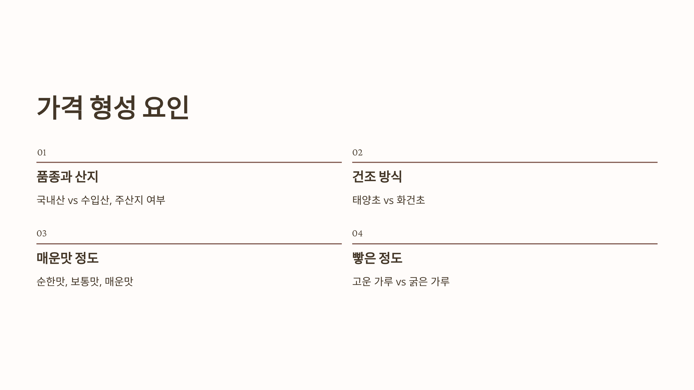 고추가루1근가격 형성 요인: 품종, 매운맛, 태양초 유무에 따른 시세 분석