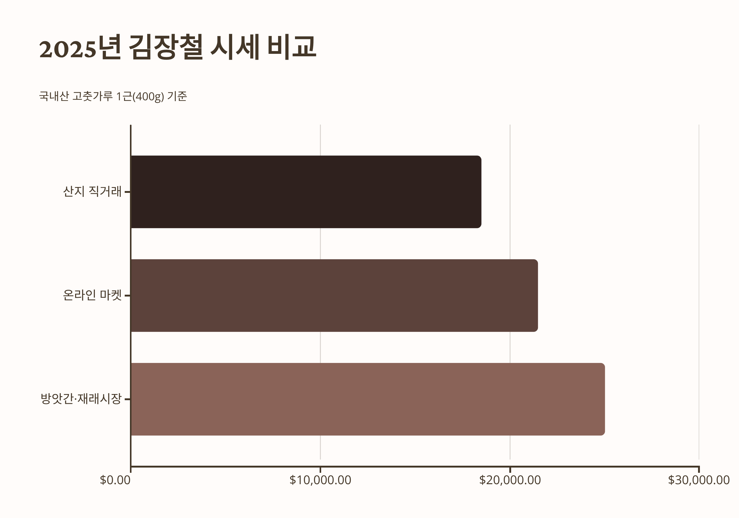2025년 김장철을 기준으로 고추가루1근가격의 대략적인 시장 시세와 구매 채널별 특징을 비교합니다. (시세는 변동적일 수 있습니다.)