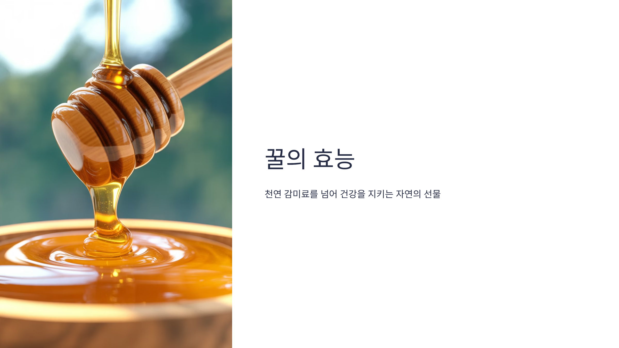 꿀은 단순한 단맛을 넘어, 우리 몸의 면역 체계를 돕고, 항산화 작용을 하며, 상처 치유에 기여하는 등 수많은 건강상의 효능을 가진 천연 식품입니다.