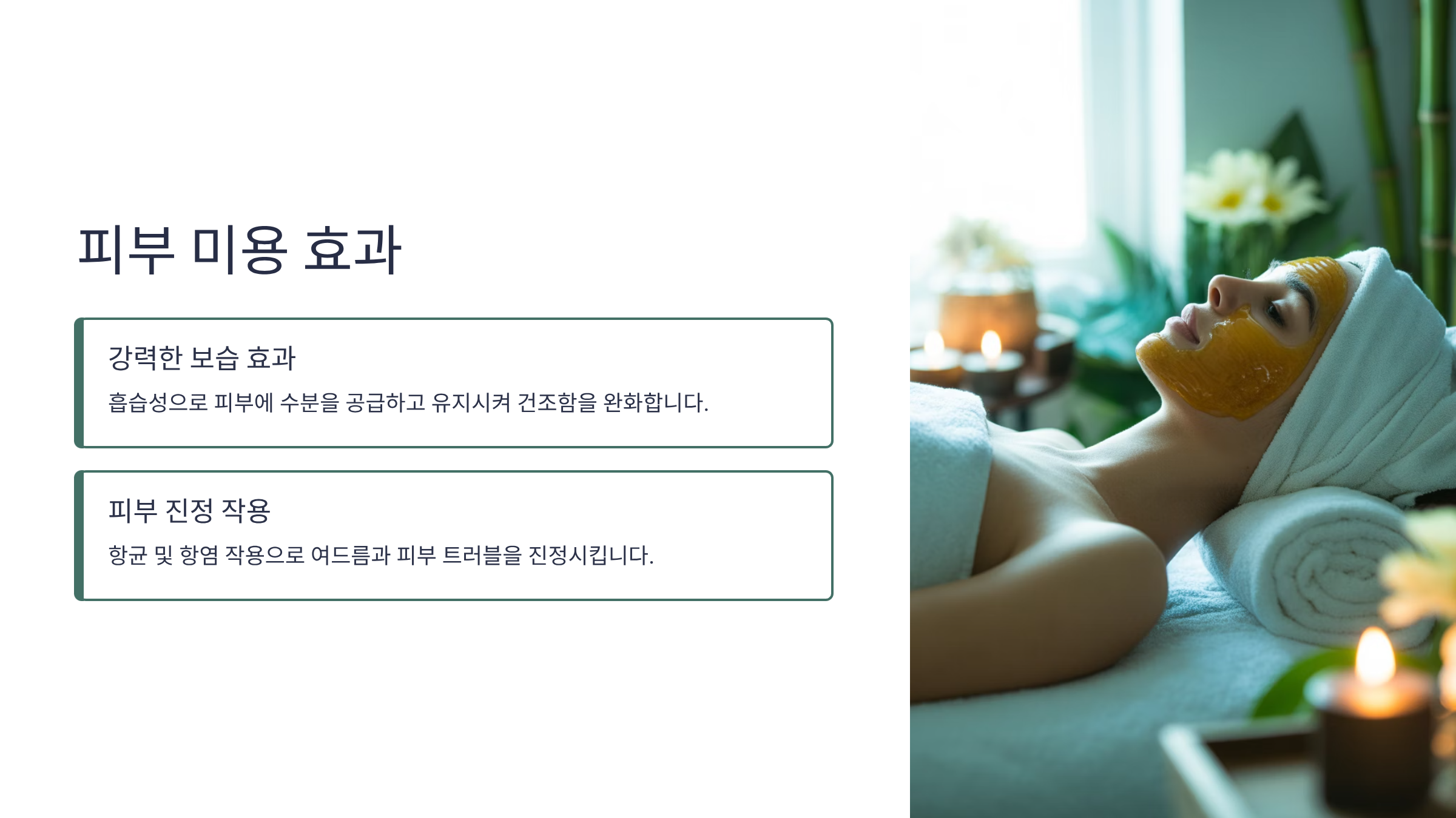 - 피부 보습 및 진정: 꿀은 강력한 흡습성(수분을 끌어당기는 성질)을 가지고 있어 천연 보습제로 매우 뛰어납니다. 건조한 피부에 꿀 팩을 하거나, 꿀을 첨가한 제품을 사용하면 피부에 수분을 공급하고 유지시켜 건조함을 완화할 수 있습니다. 또한, 항균 및 항염 작용으로 여드름이나 피부 트러블을 진정시키는 데도 도움을 줍니다.