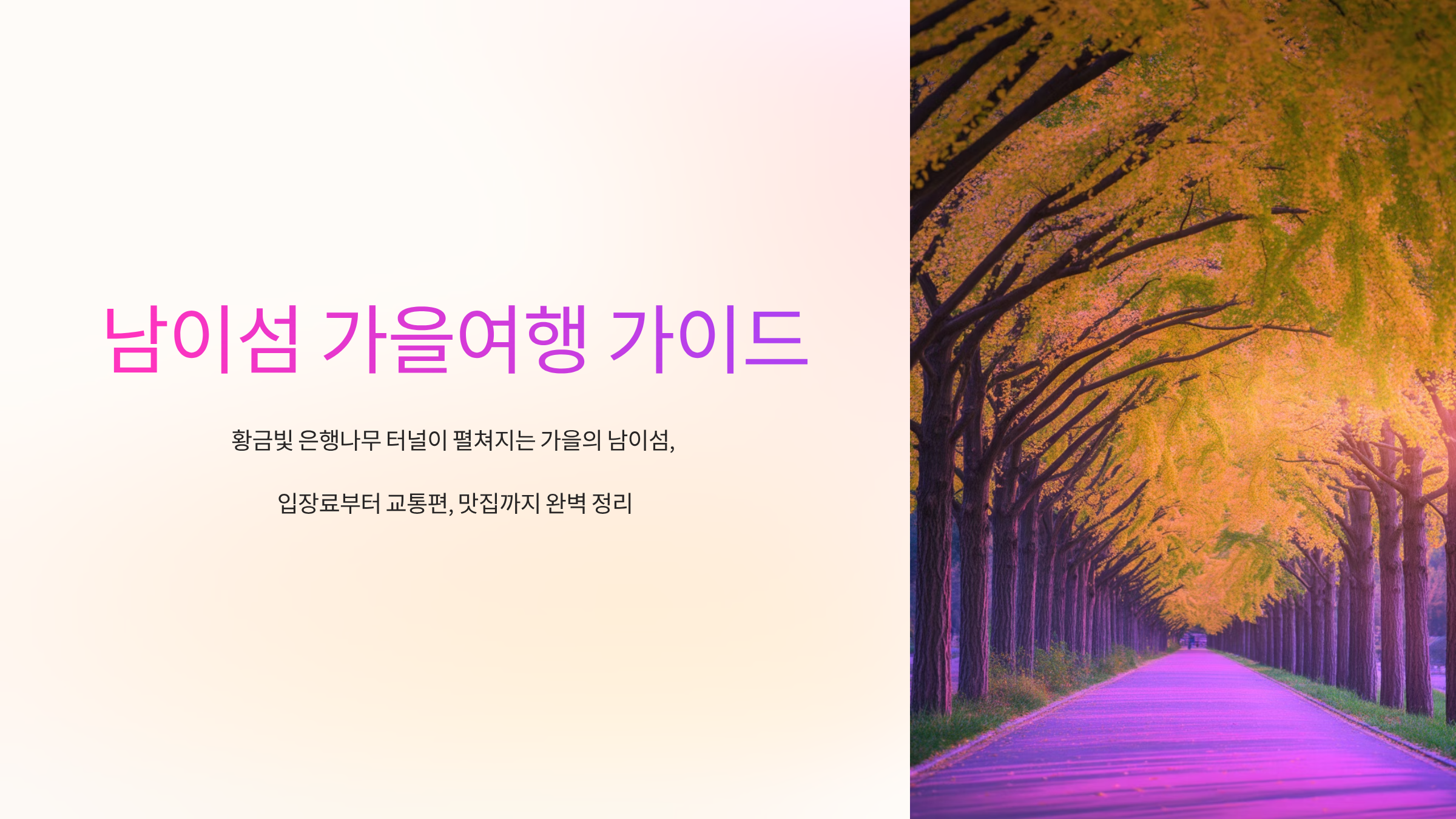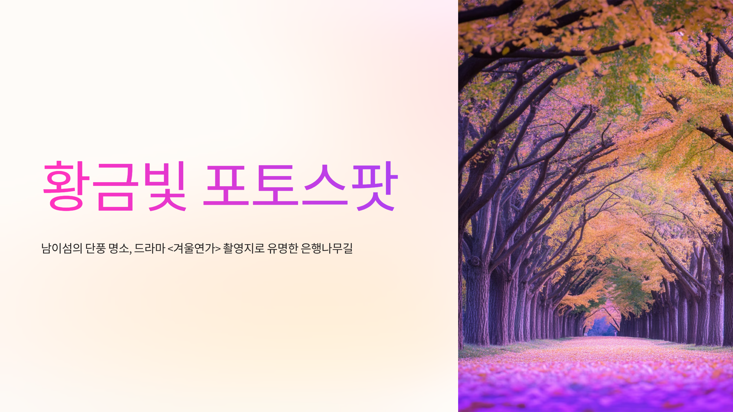 가을이 오면 가장 먼저 떠오르는 곳이 있다. 바로 노란 은행잎이 물드는 남이섬이다.
