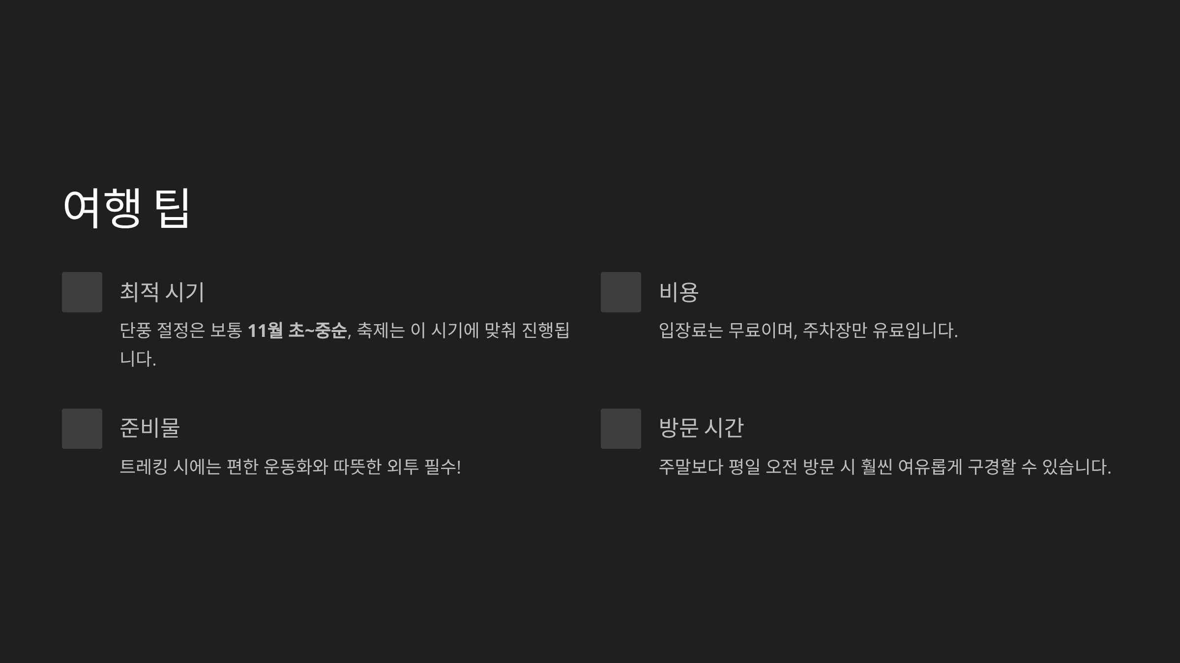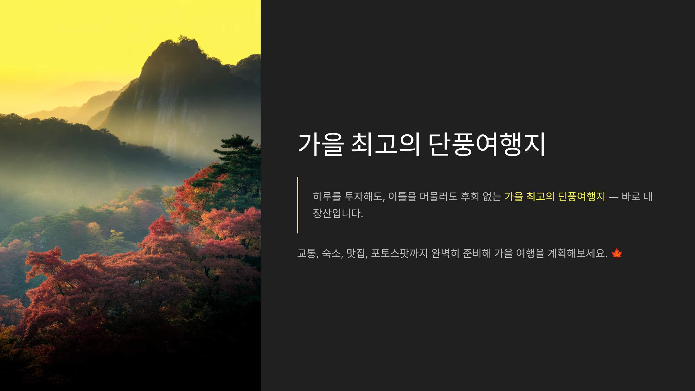 교통, 숙소, 맛집, 포토스팟까지 완벽히 준비해 가을 여행을 계획해보세요.