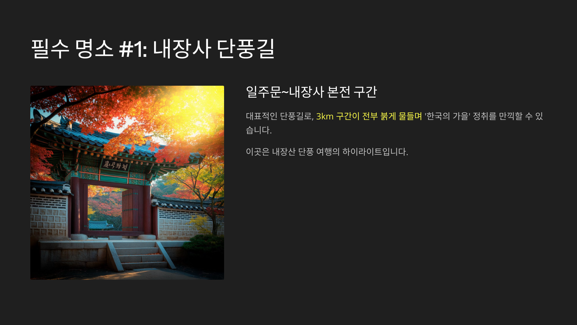 하루를 투자해도, 이틀을 머물러도 후회 없는 가을 최고의 단풍여행지 바로 내장산입니다.