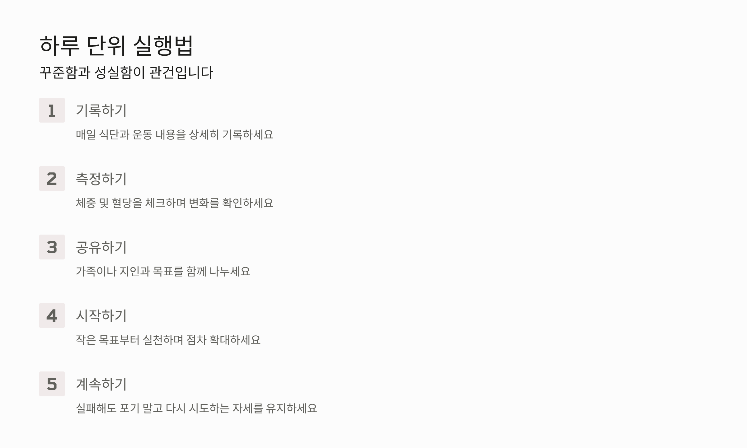 - 작은 목표부터 실천하며 점차 확대