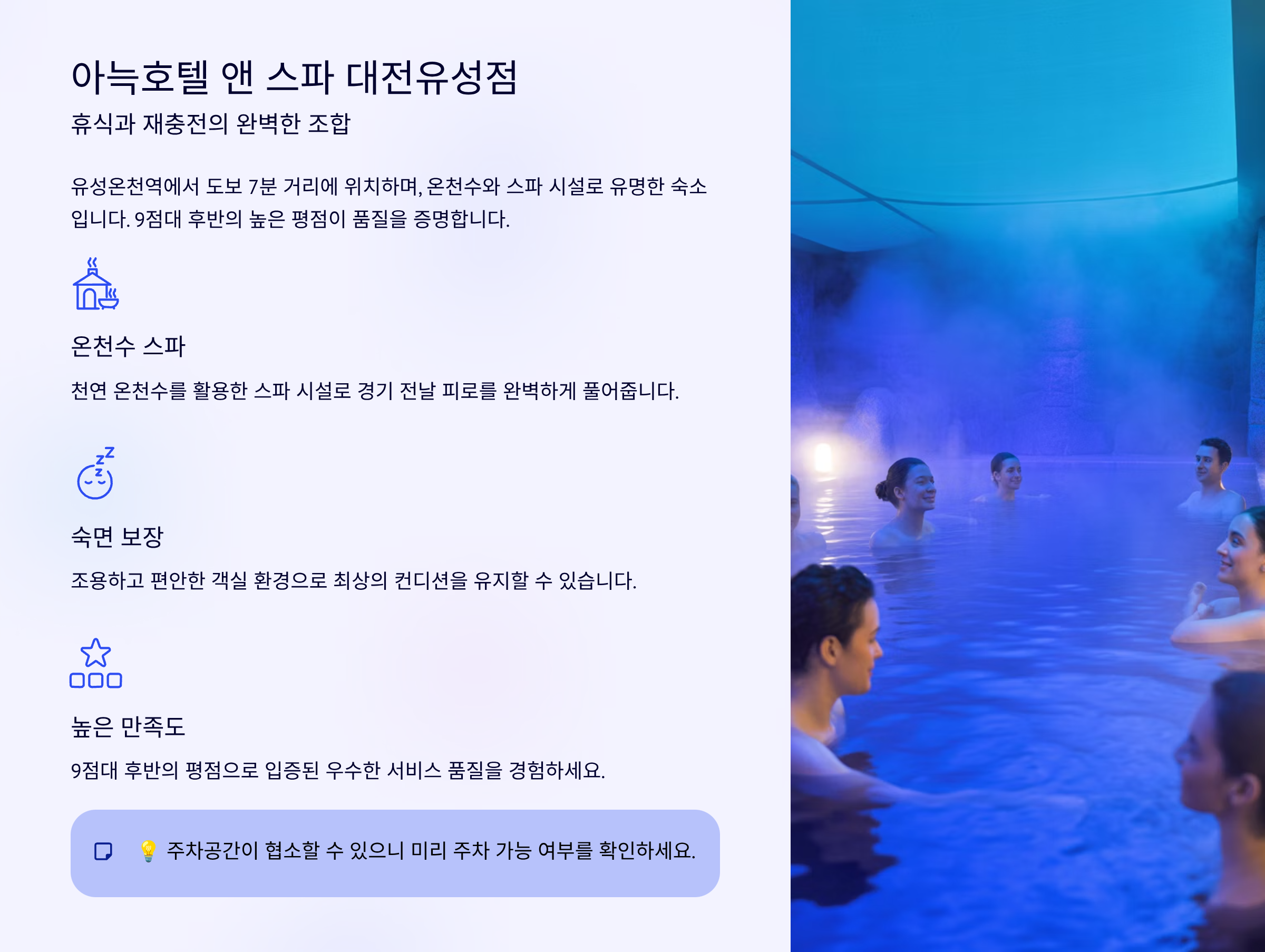 - 휴식·온천 중심이라면 → 아늑호텔 앤 스파
