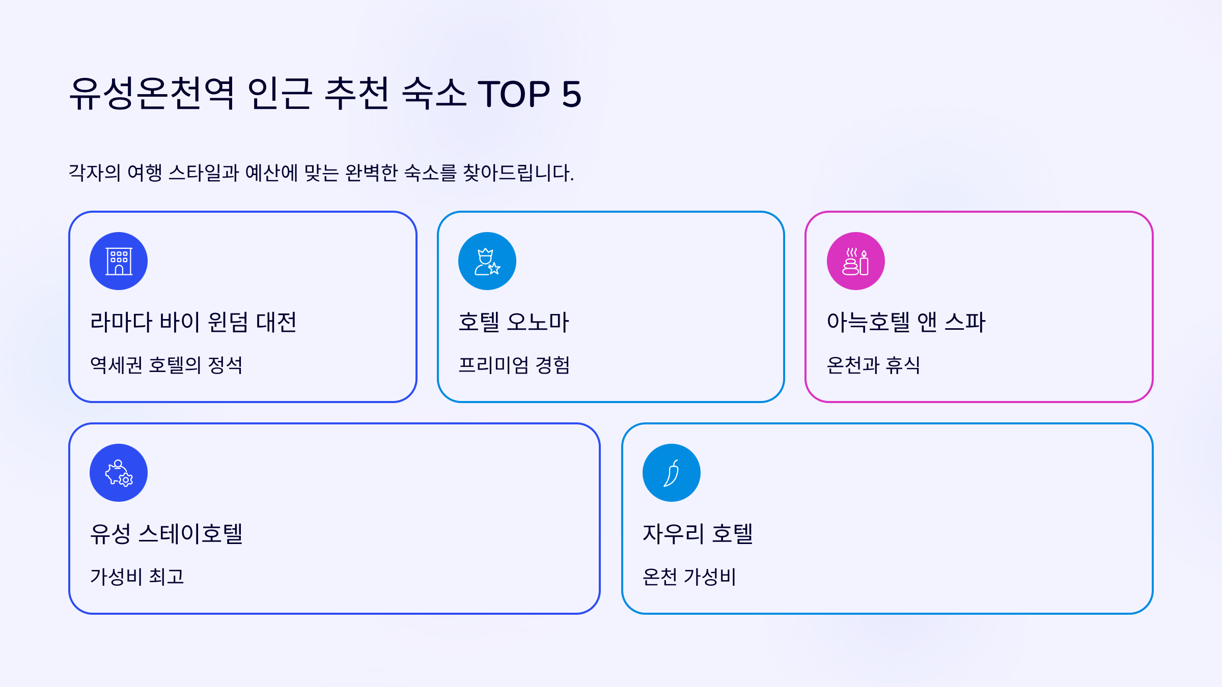 관람객을 위한 유성온천역 인근 숙소 추천입니다.