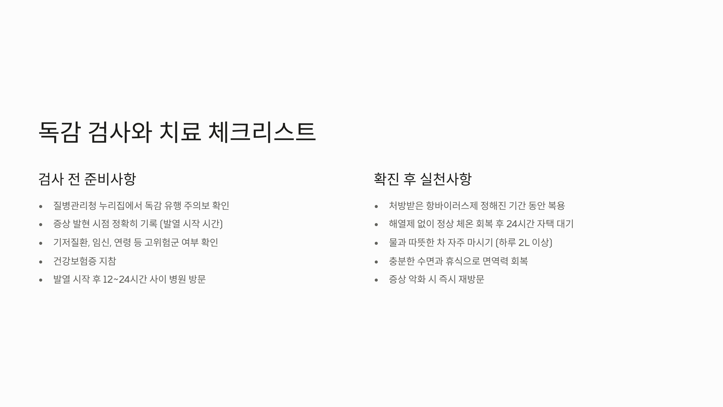 독감 검사 전에 반드시 병원에 가야 할 증상 체크리스트