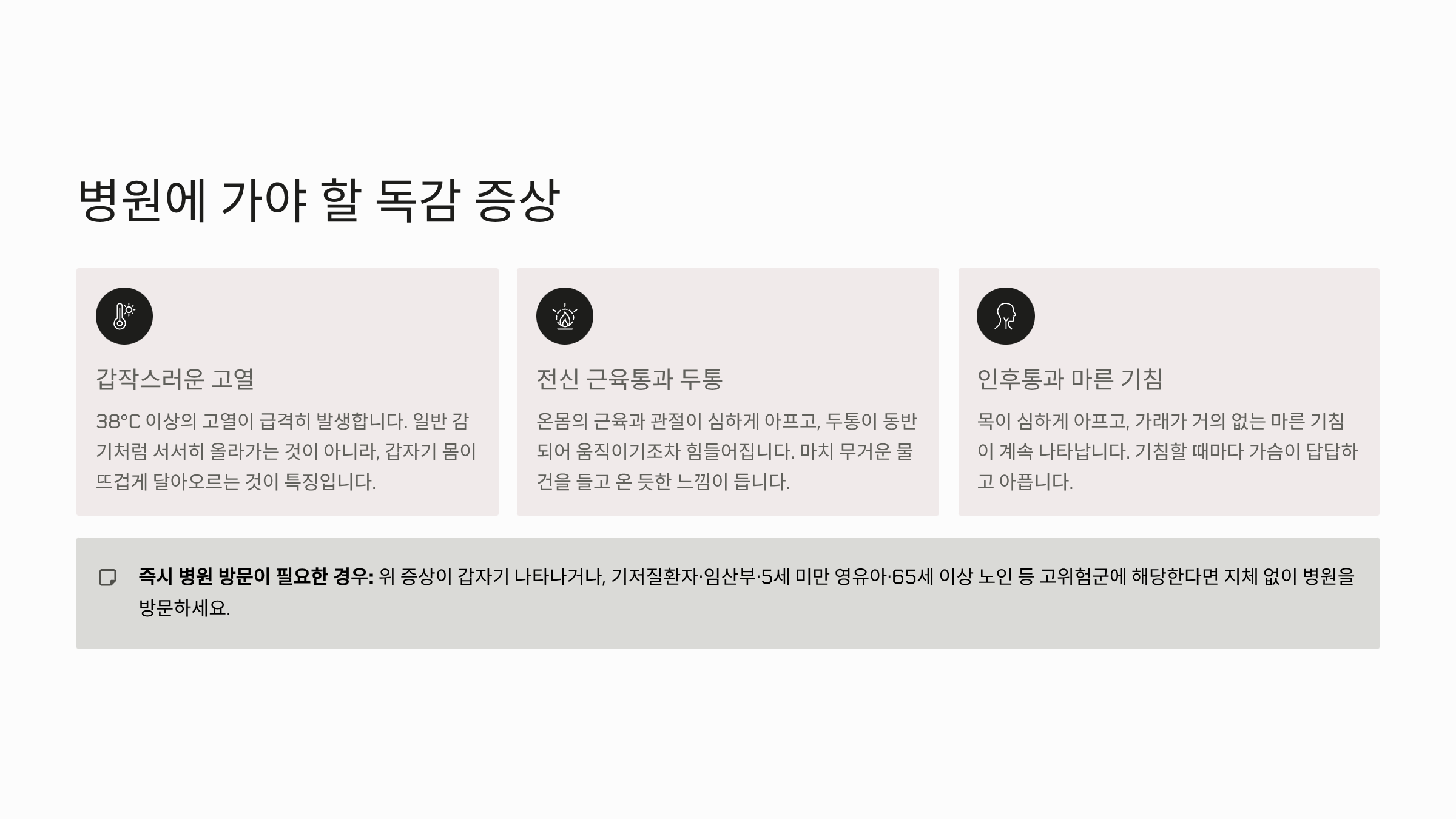 - 독감의 주요 증상 (병원 방문 필수):