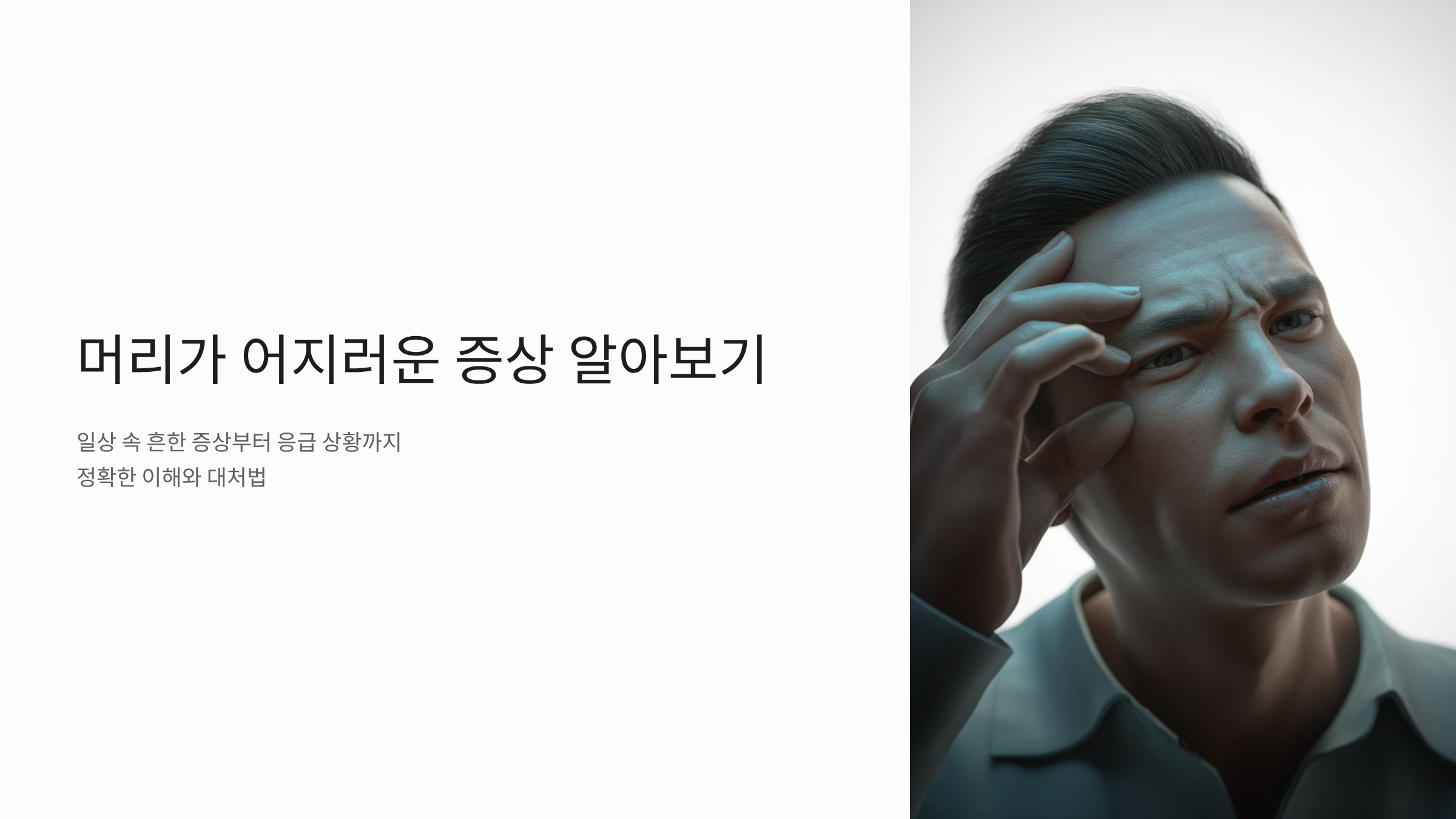 머리가 어지러운 증상은 일상에서 흔하지만, 원인이 빈혈, 이석증 등 비교적 가벼운 질환부터 뇌졸중처럼 치명적인 응급 질환까지 다양합니다.