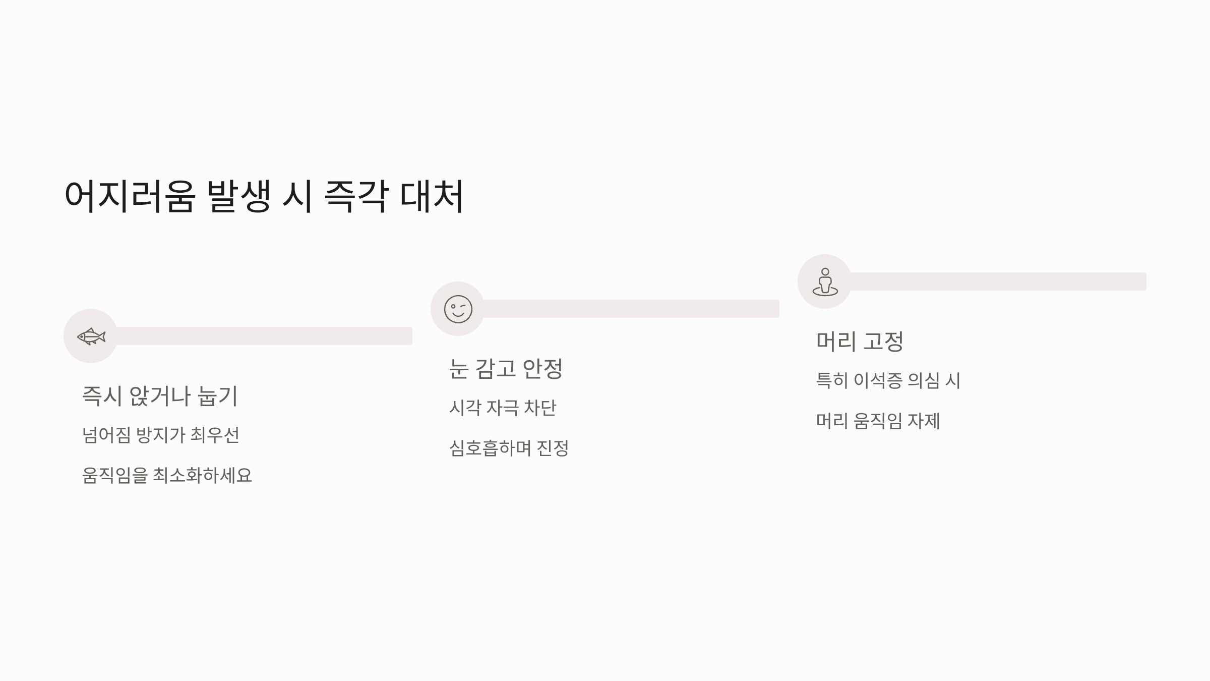어지러움 증상이 갑자기 발생했을 때 위험을 막고 증상을 완화할 수 있는 자가 대처 노하우입니다.