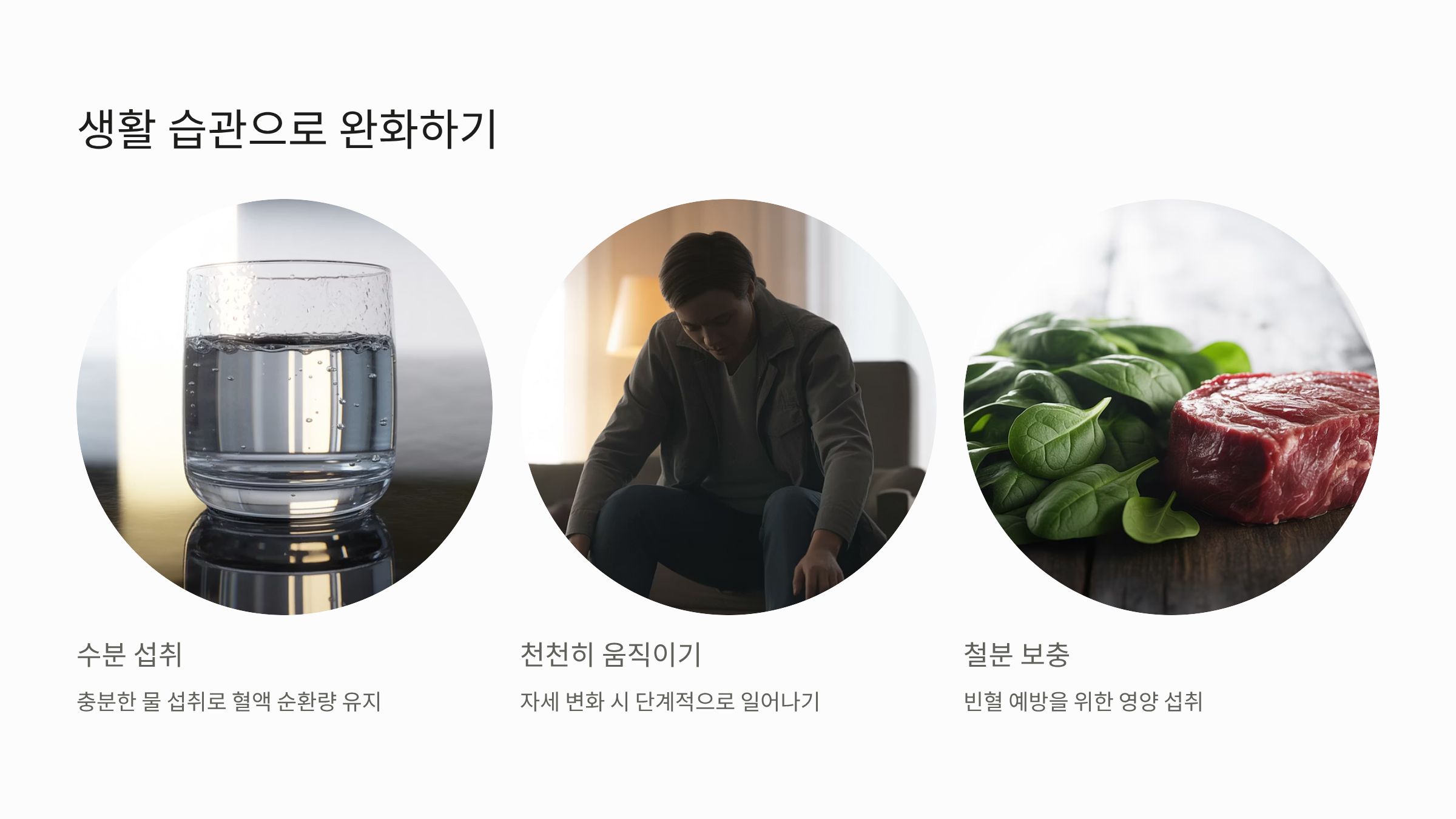 응급 상황이 아닌 빈혈, 기립성 저혈압, 만성 피로 등으로 인한 어지러움은 생활 습관 교정을 통해 충분히 완화할 수 있습니다.
