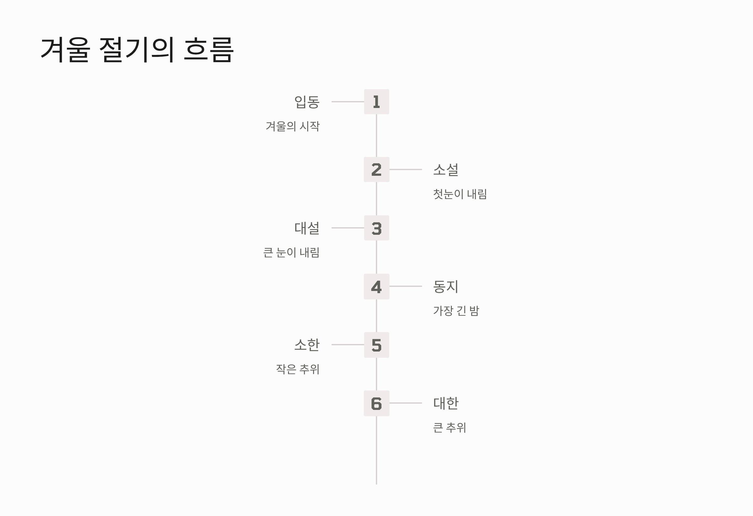 입동이 지나고 겨울에 접어들면 소설, 대설, 동지, 소한, 대한의 순서로 절기가 이어지며 깊은 겨울로 향하게 됩니다. 현대 사회에서도 이 24절기는 계절감을 익히고 날씨 변화를 예측하는 데 여전히 유용한 지표로 작용하고 있습니다. 단순히 옛날 방식이라고 치부하기에는 자연의 섭리가 정확하게 담겨 있기 때문입니다.