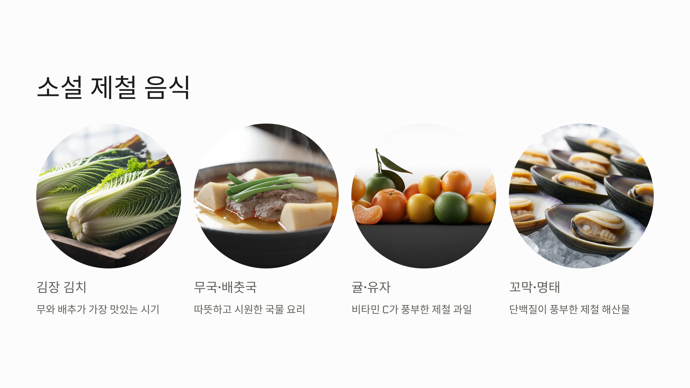 4. 소설 절기 음식: 추위를 녹이고 면역력을 높이는 제철 보양식 추천