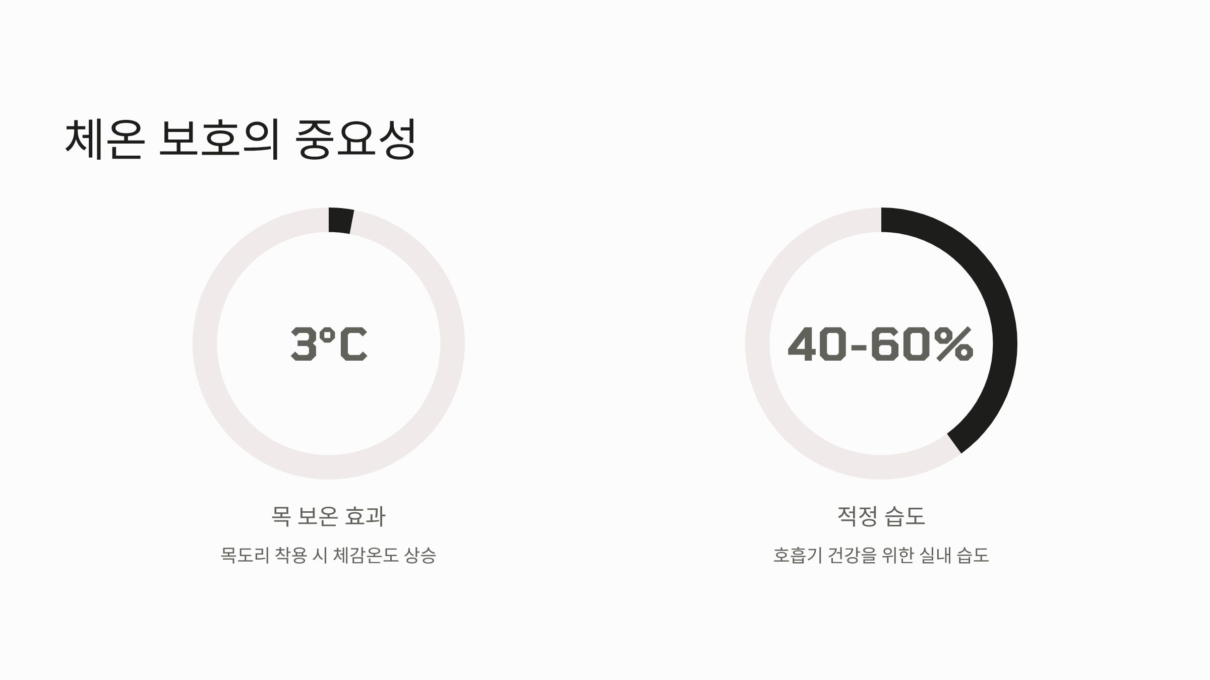 첫 번째로 체온 유지가 가장 중요합니다. 두꺼운 옷 하나를 입는 것보다 얇은 옷을 여러 겹 겹쳐 입는 것이 보온 효과가 뛰어납니다. 외출 시에는 목도리나 장갑, 모자를 착용하여 체열이 빠져나가는 것을 막아야 합니다. 특히 목 부위를 따뜻하게 하면 체감 온도를 3도 이상 높일 수 있습니다.