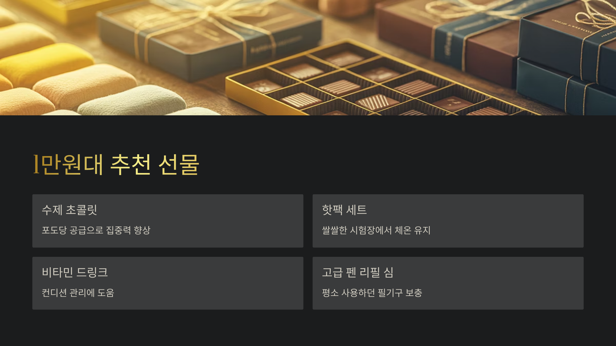 수능 선물은 가격보다 정성이 중요합니다. 받는 수험생에게 부담을 주지 않으면서도 따뜻한 마음을 전달할 수 있는 가격대별 추천 가이드입니다.