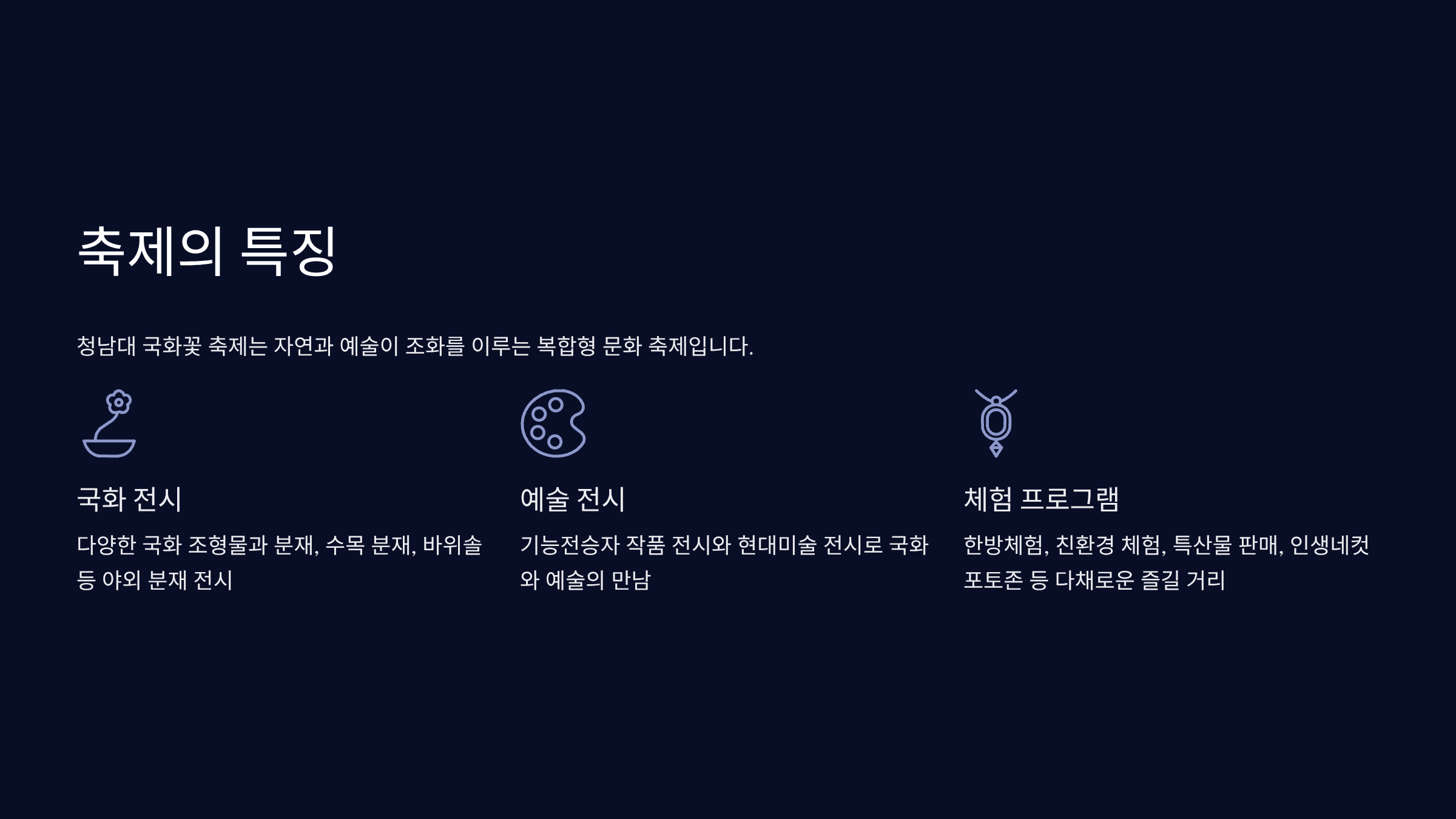 청남대 국화꽃 축제는 단순한 국화 전시를 넘어 자연과 예술을 결합한 복합형 축제입니다.