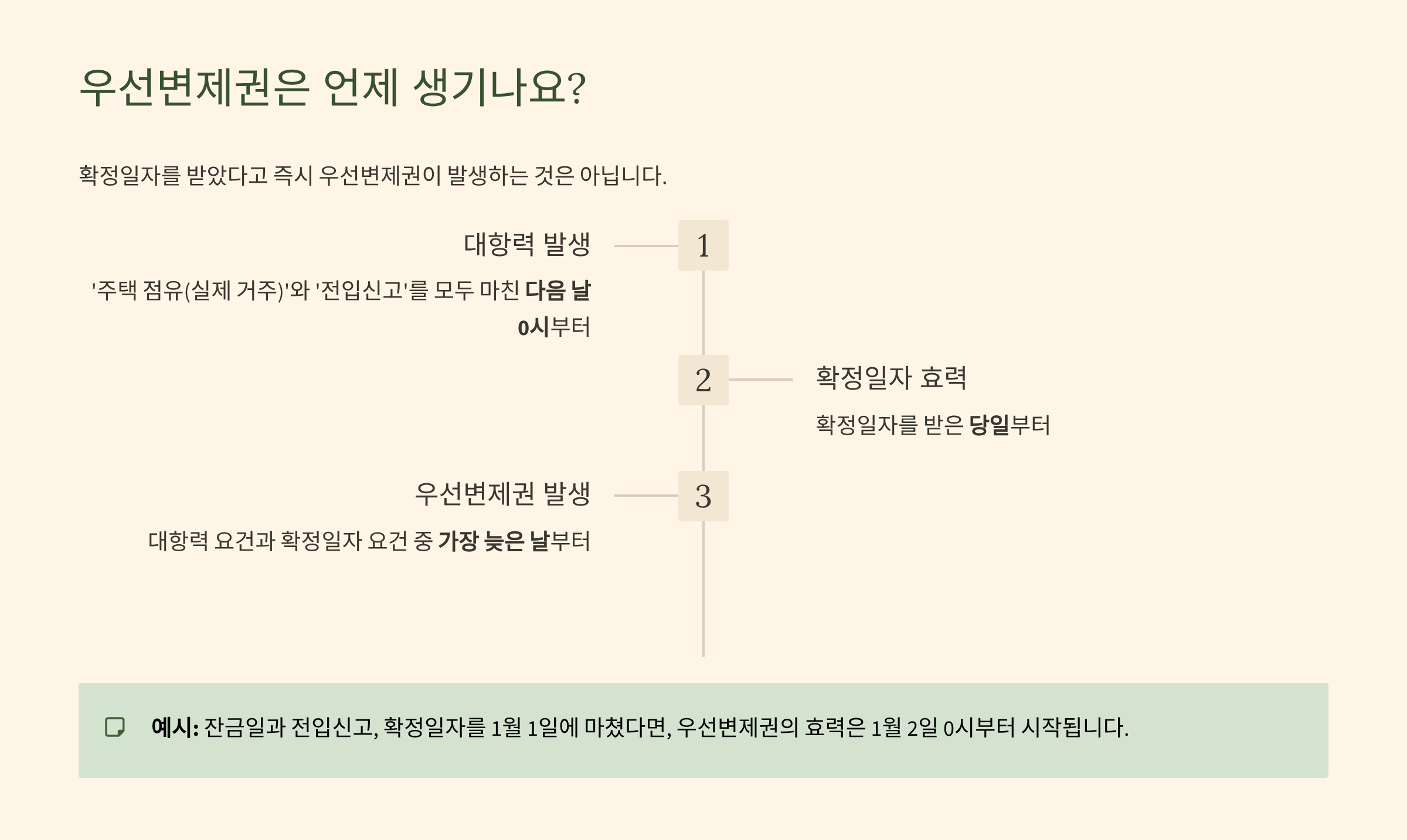 - 확정일자 요건: 확정일자를 받은 당일부터 발생합니다.