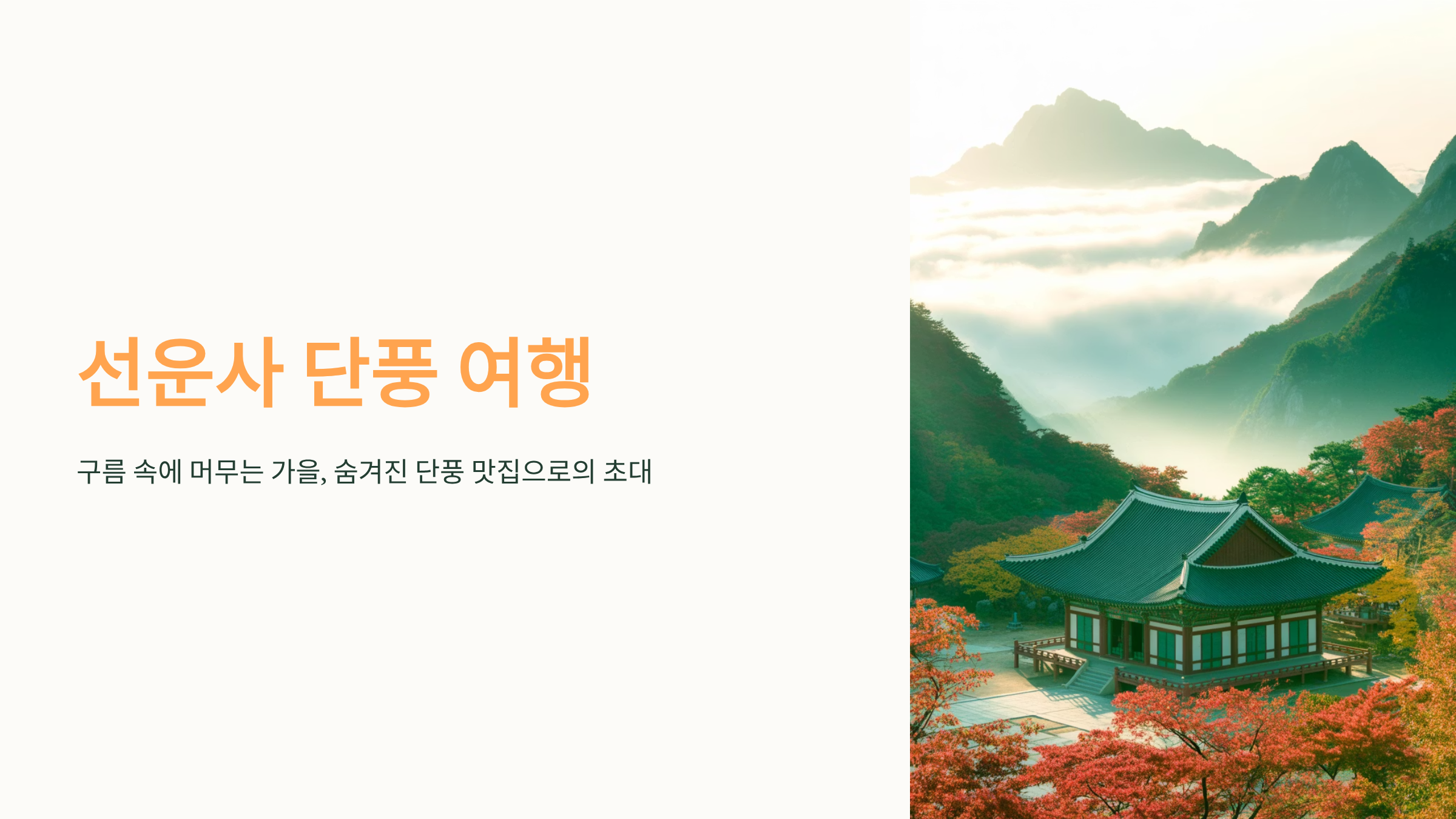 1. 선운사 단풍 특징전라북도 고창군 아산면에 자리한 선운사는 ‘구름 속에 머문다’는 뜻의 절 이름답게, 고요한 산사의 정취가 깊게 배어 있는 명찰입니다. 이 사찰이 있는 선운산(禪雲山)은 높지는 않지만 계곡과 숲길이 어우러져 있기에 계절마다 색다른 매력을 선사하죠. 특히 가을이 되면 붉은 단풍·노란 은행잎·맑은 계곡물이 어우러지면서 “숨겨진 단풍 맛집”으로 불릴 만큼 풍경이 빼어납니다.이곳의 특징은 다음과 같습니다:동백나무 군락과 고즈넉한 사찰 건축이 함께 있는 자연 + 역사 공간.산세가 높지 않아, 전문 등산복이 없어도 산책과 단풍 감상이 가능.계곡길, 숲길, 절길이 연결되어 있어 걷기 좋고 사진 찍기 좋은 동선이 확보되어 있습니다.대도시의 유명 단풍 명소처럼 ‘혼잡함’이 과도하지 않은 편이라 여유롭..