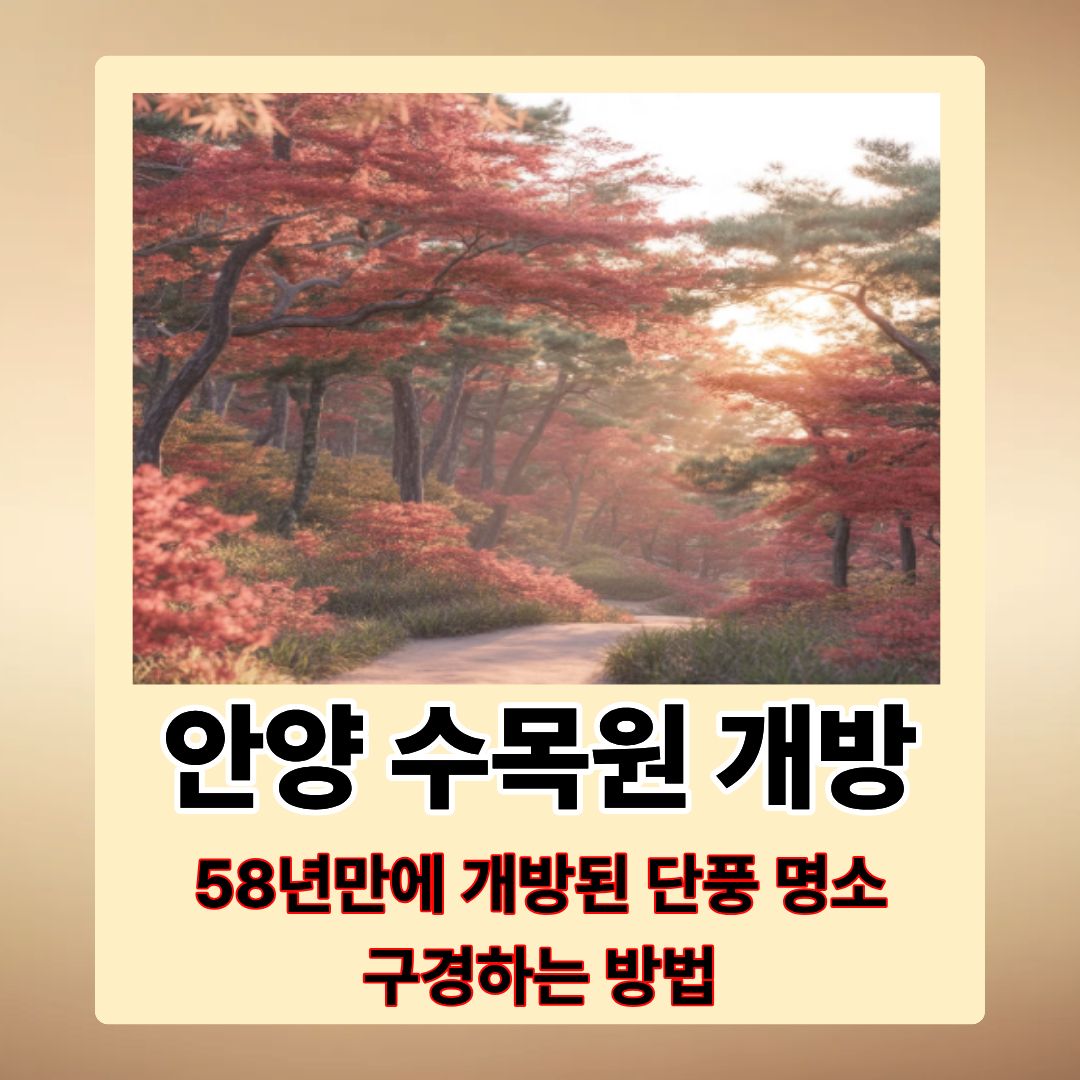 안양 수목원 개방은 58년간 연구 목적으로 일반인의 발길이 허락되지 않았던 곳이 열리는 귀한 기회입니다.이 글은 '58년 만의 개방'이 가진 의미와 함께, 이 특별한 단풍 명소를 성공적으로 구경하는 방법을 안내합니다. 수목원 방문 전 반드시 이해해야 할 '관람객이 지켜야 할 원칙'과 함께, 입장이 확정되었을 때 단풍 구경에 최적인 포토 스팟 3곳을 소개합니다.또한, 연구 자원 보호를 위한 숲길 에티켓과 훼손 시 발생할 수 있는 불이익까지 명확히 고지합니다. 만약 개방 기간을 놓치더라도 아쉬움을 달랠 수 있는 주변 명소 활용법까지 제시합니다.안양 수목원 개방은 일반인에게는 단순한 산책로 개방을 넘어, 수십 년간 닫혀 있던 자연의 보고를 잠시나마 엿볼 수 있는 역사적인 기회입니다. 1960년대부터 서울대학교..